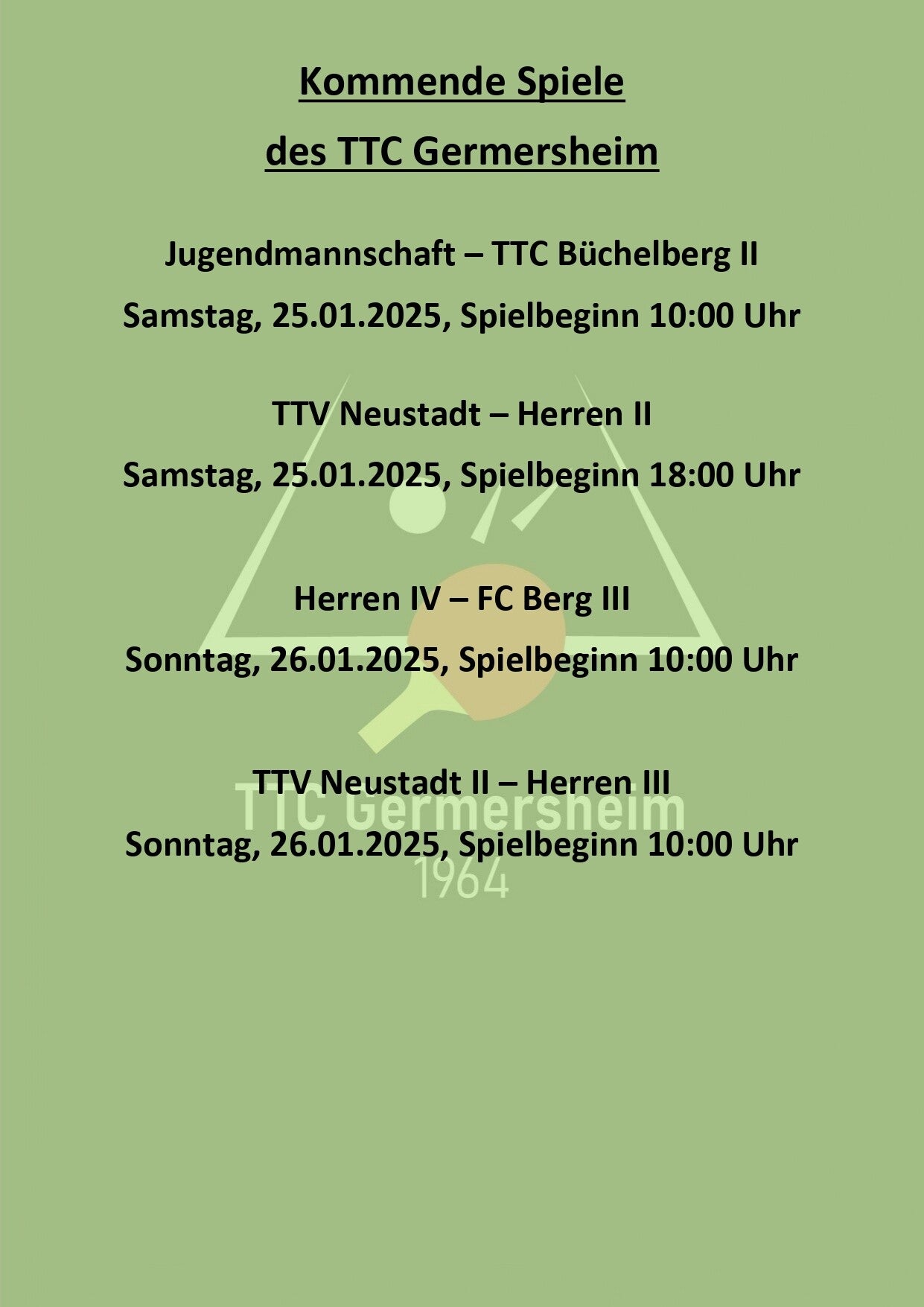 Kommende Spiele des TTC Germersheim