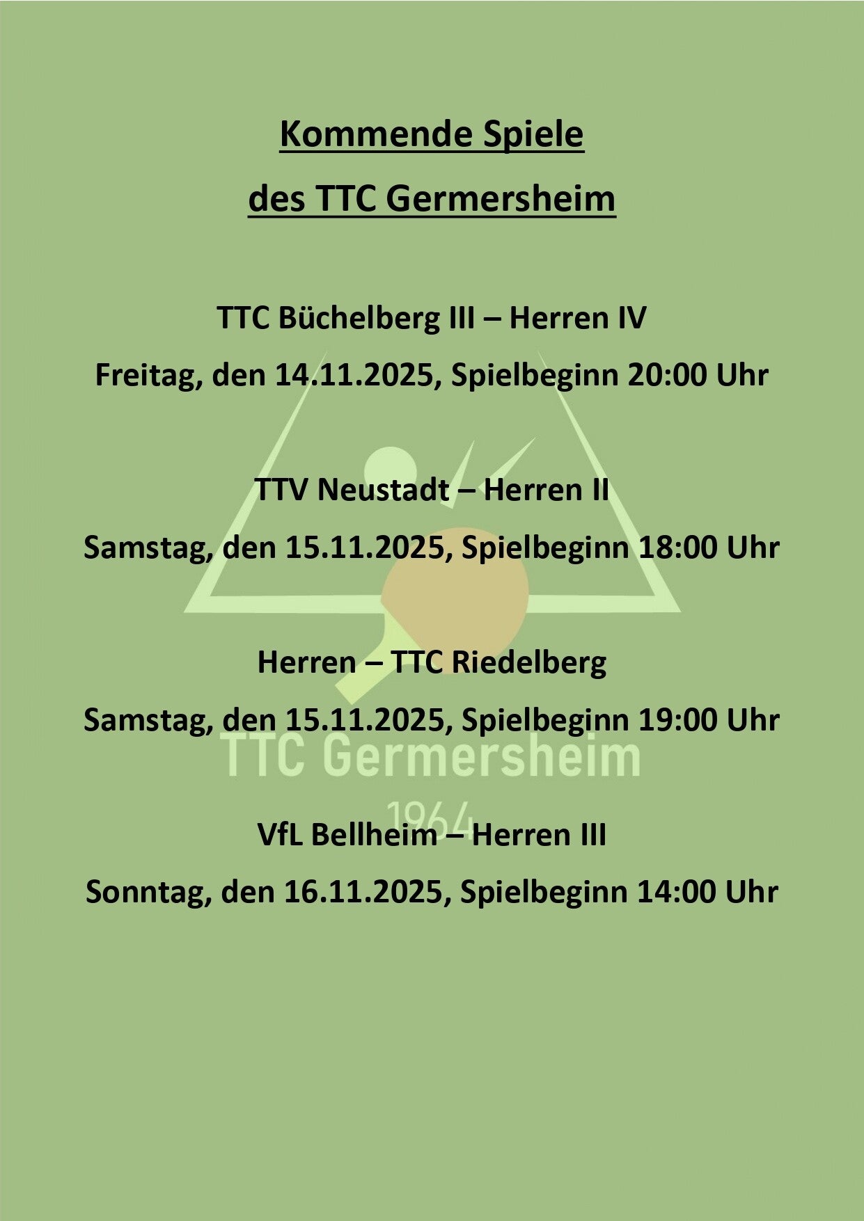 Kommende Spiele des TTC Germersheim