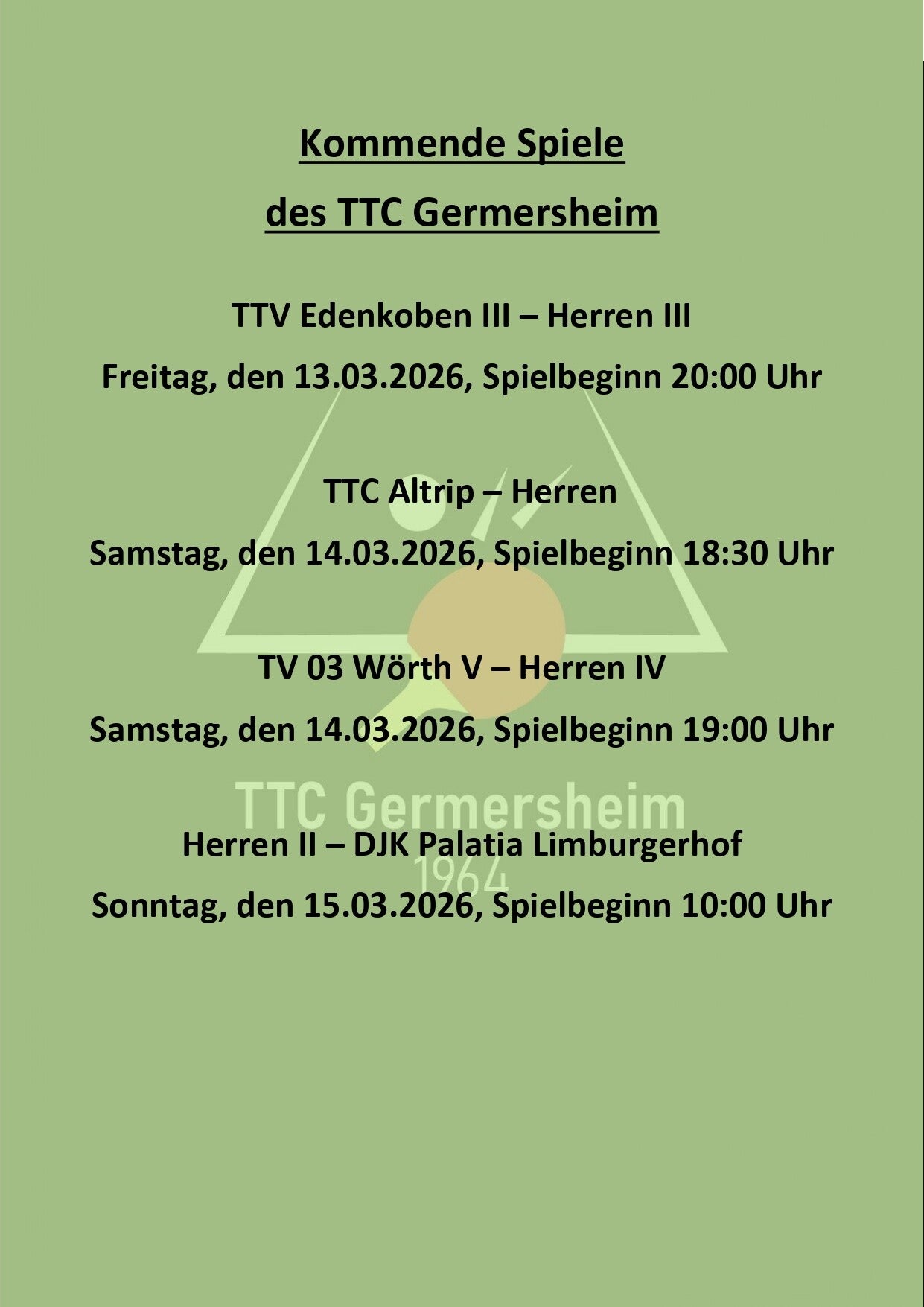 Kommende Spiele des TTC Germersheim